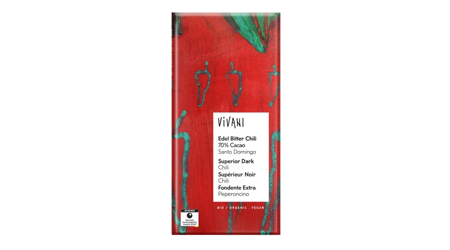 Összetevők: kakaómassza*, nyers nádcukor*, kakaóvaj*, chili* (szárított) 0,25%.