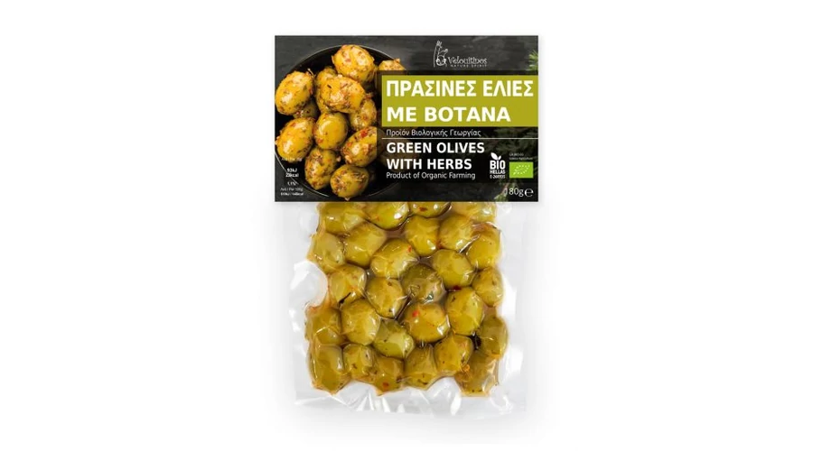 Összetevők: Amfissas bio magos olívabogyó*, bio kakukkfű*, bio oregánó*, bio chili paprika*, bio menta*, só.