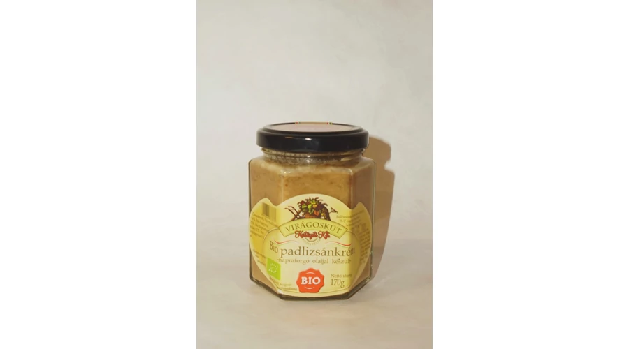 Összetevők: bio padlizsán 66%, bio hagyma 20%, bio napraforgó étolaj 11%, bio fokhagyma 1%, só.