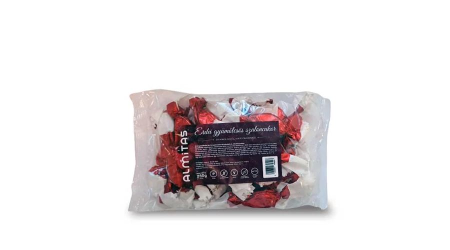 Erdei gyümölcsös (9,4%) szaloncukor étcsokoládéval, édesítőszerekkel.