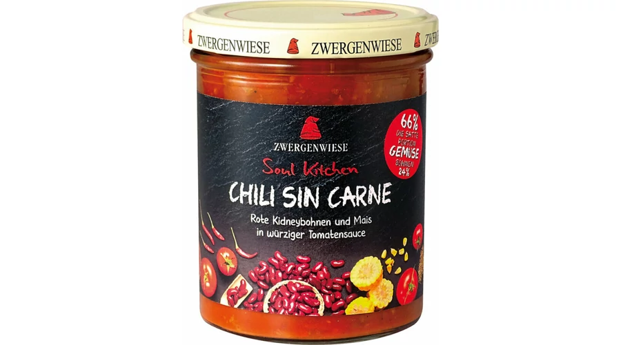 Összetevők: 66% zöldség (paradicsom*, egyszerűen koncentrált paradicsompüré, paprika*, hagyma*, kukorica*), 24% főtt Kidney bab*, agavészirup*, 3% szójahús*, víz, kősó, citromlé koncentrátum, napraforgóolaj*, burgonyakeményítő*, bors*, cayenne bors*, római kömény*, fokhagyma*.