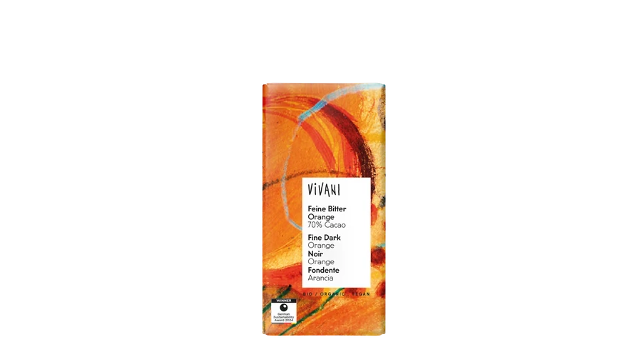 Összetevők: kakaómassza*, nyers nádcukor*, kakaóvaj*, narancsolaj*.