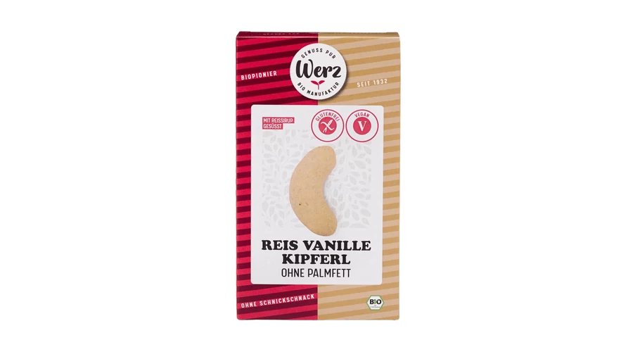 Összetevők: teljes kiőrlésű rizsliszt* (58%), rizsszirup* (fermentált rizs*, víz), pálmaolaj, mandula*, víz, vanília* (1%), sűrítőanyag: guarmagliszt*, borkő-sütőpor* (kukoricakeményítő*, savanyúságot szabályozó borkő, szódabikarbóna).