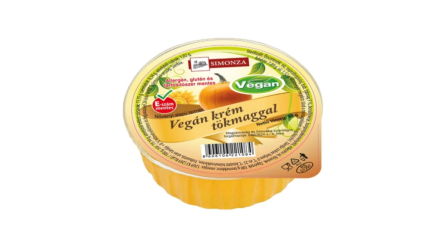 Összetevők: víz, napraforgóolaj, bab, tökmag 9%, borsófehérje, burgonyakeményítő, étkezési só, fűszerek.